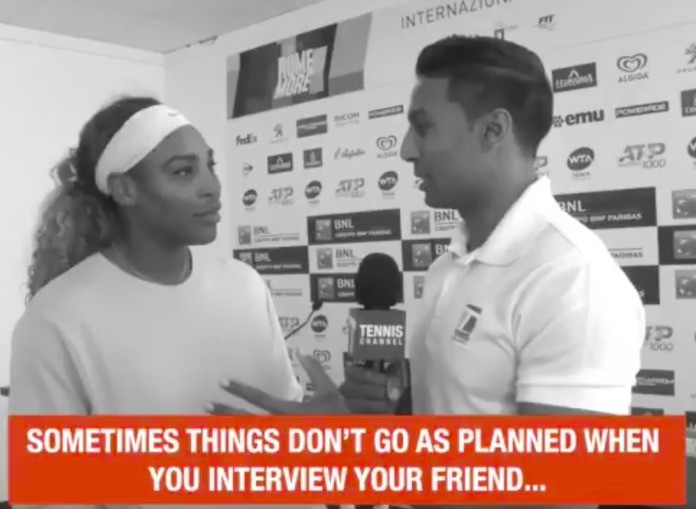 Serena Williams, intervistata da Prakash Amritraj di Tennis Channel, scoppia più volte in una risata che non riesce a frenare. Piegata in due gli dice: "Riesci a non essere così serio?!". (video all'interno)