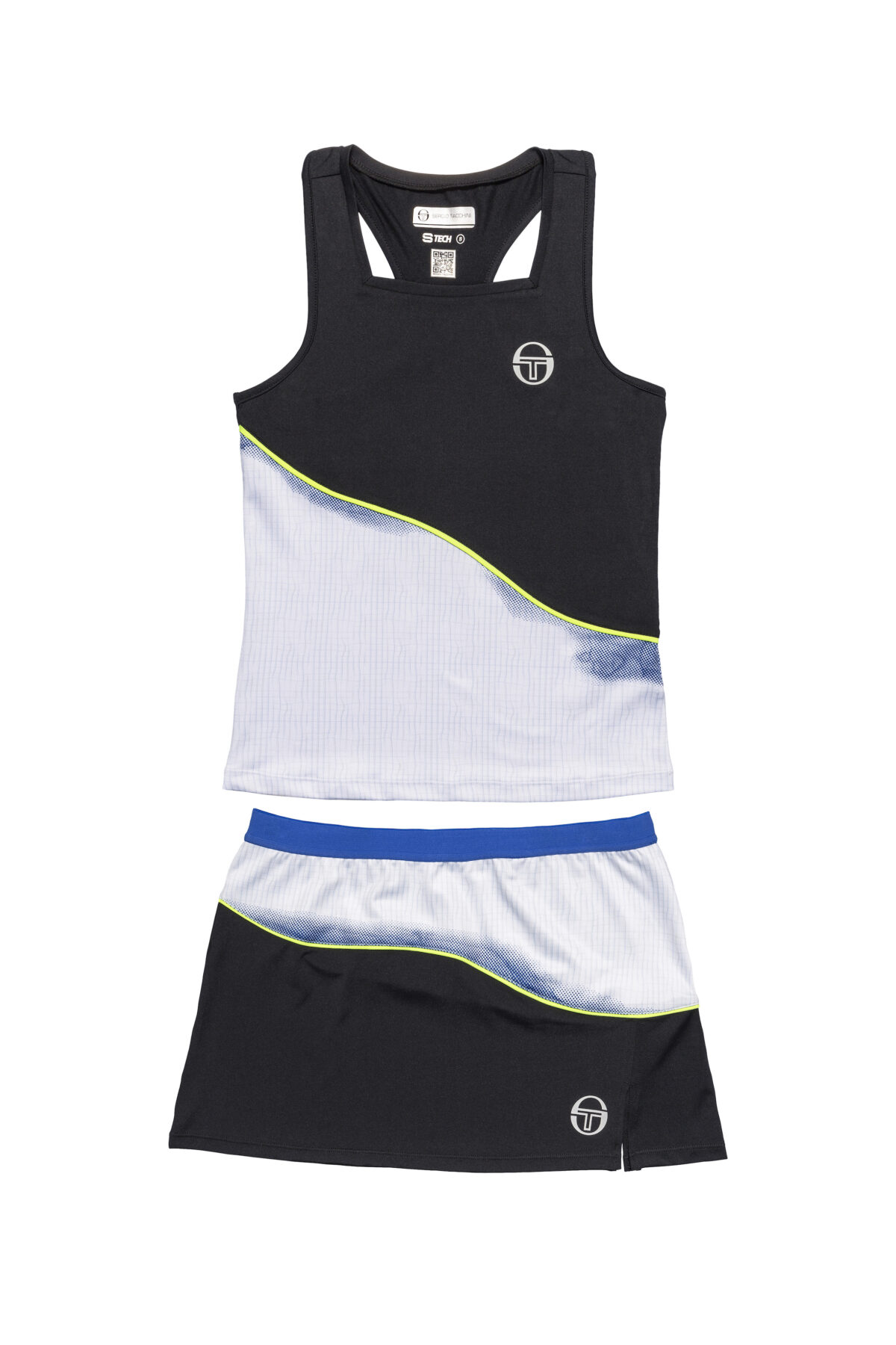 E il futuro imminente ha due nomi: Accel e Grind Coast. La “Accel” è la linea Uomo che prende ispirazione da un completo realizzato a fine anni ’90 per Goran Ivanisevic. “La polo originale era caratterizzata dalla sfumatura di toni dal più chiaro al più scuro, un gioco di gradazioni che è stato mantenuto ed arricchito da grafiche ispirate al volo di stormi di uccelli al tramonto, tradotte in linee geometriche irregolari. Il forte contrasto colore tra il davanti e il dietro della polo costituiscono l’impatto cromatico più forte, ripreso poi in piccoli dettagli sulle maniche e sul colletto. Lo short, in tessuto morbido e confortevole, è dello stesso colore del retro della polo”. I completi sono proposti in due tonalità: polo con sfumature gialle e pantaloncini neri e polo con sfumature azzurre con pantaloncini bianchi.