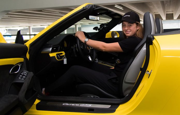 Breve descrizione: nel parcheggio rialzato all’esterno della Porsche Arena c’è uno spazio che l’organizzazione tiene per le giocatrici, che devono far correre una Porsche lungo un piazzale, fare alcune manovre e uno slalom attorno ai birilli, parcheggiare e poi fermare il tempo.