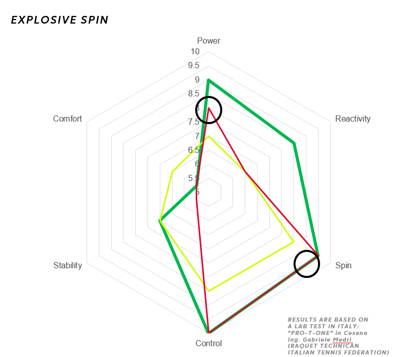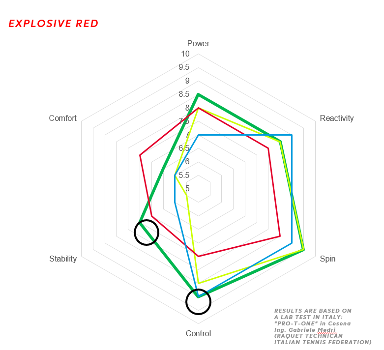 Facendo un balzo “ai giorni nostri”: a gennaio 2020 è stata lanciata la linea di racchette SX, dove S sta per Spin, è quindi nata anche la corda Explosive Spin, dove la superficie ruvida permette di dare il famoso “morso” alla palla, che prende una grande rotazione sia nei colpi in top sia in quelli in back. La corda viene proposta nei colori giallo e nero.