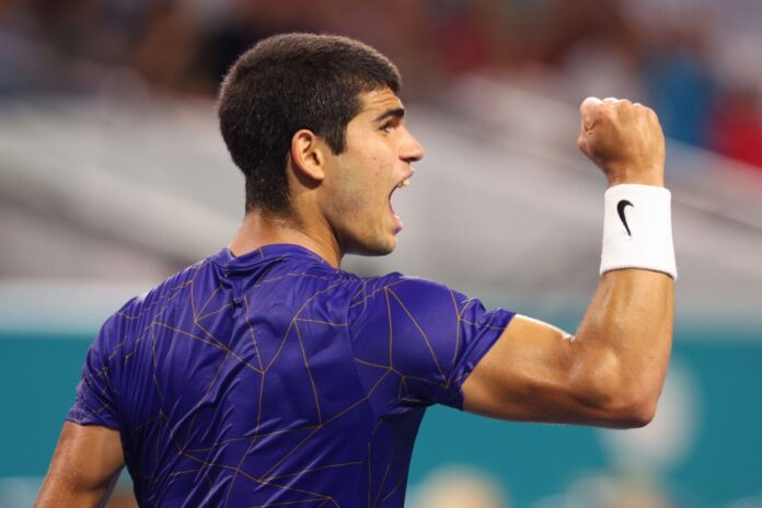 Carlos Alcaraz in semifinale al “Miami Open”, secondo ATP Masters 1000 stagionale (combined con il terzo WTA 1000 del 2022) dotato di un montepremi di 8.584.055 che si sta disputando sul cemento dell’Hard Rock Stadium in Florida. Lo spagnolo, numero 14 del tabellone, nella notte italiana si è imposto sul serbo Miomir Kecmanovic con il punteggio di 6-7(5) 6-3 7-6(5).
