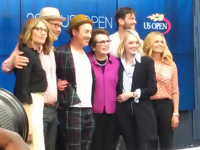 Proprio oggi, in attesa della finale femminile, i registi, il cast e Billie Jean King hanno tenuto una conferenza stampa di presentazione su ‘La Battaglia dei Sessi’, film che racconta la storia della celebre partita giocata nel 1973 tra il 55enne ex campione Slam Bobby Riggs e la campionessa americana a cui l’impianto di New York è dedicato. Oltre a Billie Jean, protagonista della conferenza stampa è stata la splendida attrice e premio oscar Emma Stone, che ha impersonato l’ex tennista.