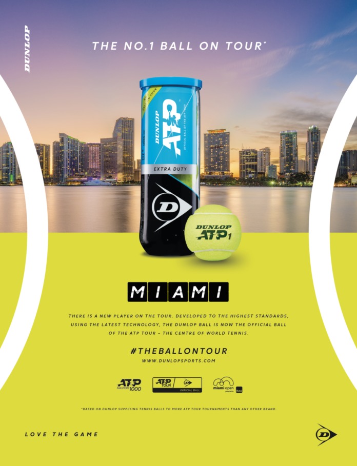 Dunlop ha annunciato un accordo pluriennale con il Miami Open “presented by Itaù”: dal 2020 sarà palla e racchetta ufficiale del torneo. Già dalla prossima edizione i migliori tennisti al mondo si sfideranno con la palla Dunlop ATP Extra Duty (gli uomini) e Dunlop Grand Prix Extra Duty (le donne).
