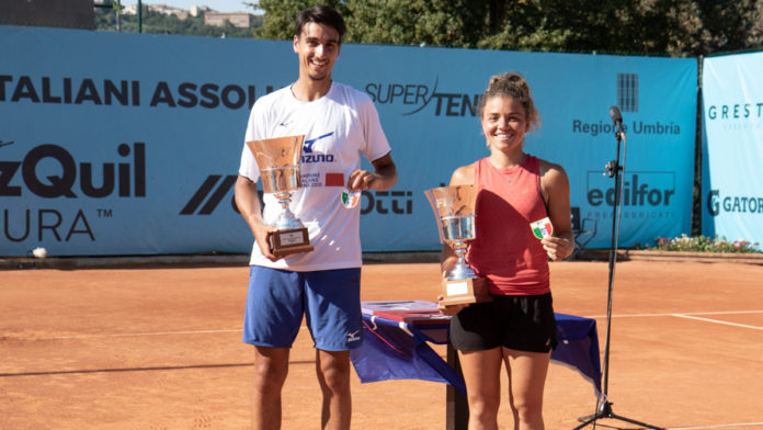 Lorenzo Sonego e Jasmine Paolini sono il nuovo campione e la nuova campionessa d’Italia. Nella finale dei Campionati Italiani Assoluti, andati in scena al Tennis Club Todi 1971, il numero 46 ATP ha battuto Andrea Arnaboldi con il punteggio di 6-4 6-3 in un’ora e 46 minuti di gioco, mentre la numero 95 WTA, avanti 6-5 nel primo set dell’ultimo atto del torneo contro Martina Trevisan, ha approfittato del ritiro dell’avversaria per presunto stiramento al bicipite femorale destro.